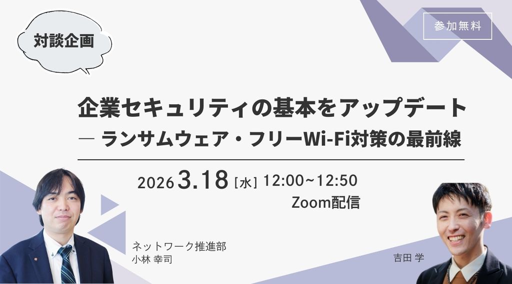 【対談セミナー】企業セキュリティの基本をアップデート -ランサムウェア・フリーWi-Fi対策の最前線