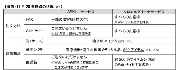 ・ASKUL Webサイトでのご注文は12月第1週中の再開を予定しております。