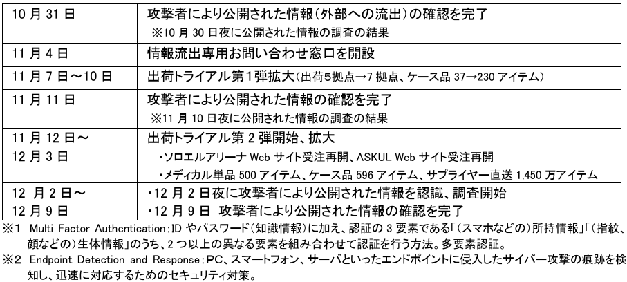 2025 年12月12日:ランサムウェア攻撃の影響調査結果および安全性強化に向けた取り組みのご報告 (第13報・本リリース)を発表※記載の内容は発表日時点の情報です。状況により変更となる可能性があります。