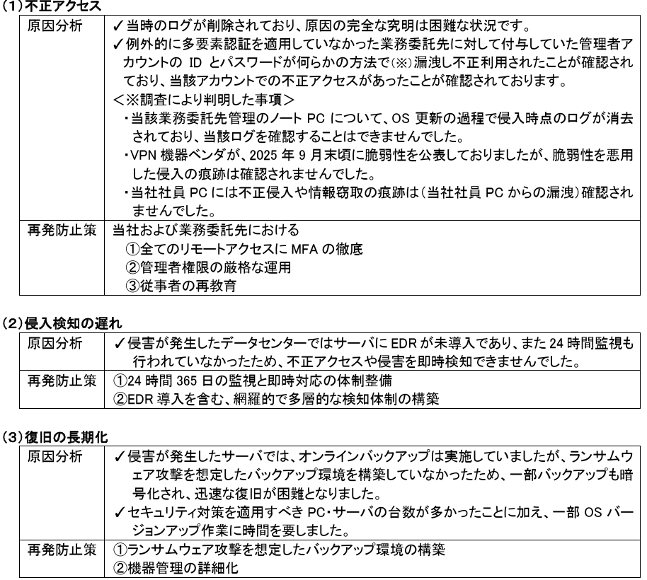 ランサムウェア攻撃の影響調査結果および 安全性強化に向けた取り組みのご報告
