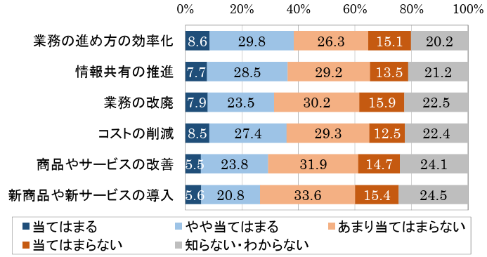 それに該当する「商品やサービスの改善」「新商品や新サービスの導入」は効率化に関連する項目より割合が低いことがわかりました。