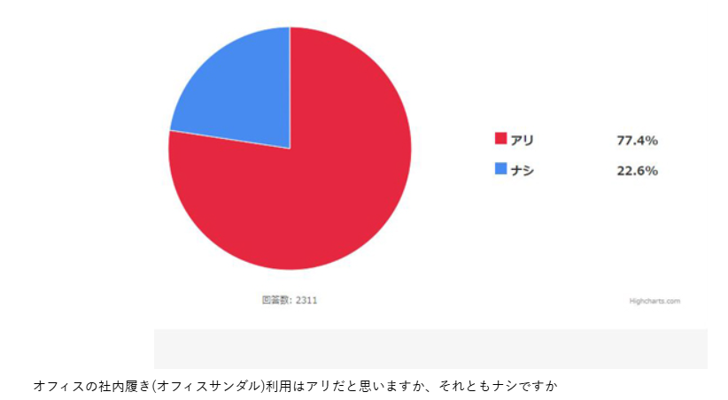 (出所:マイナビニュース「サラリーマンは「オフィスサンダル」が当たり前? 読者に聞いた」) https://news.mynavi.jp/article/20190103-743686/