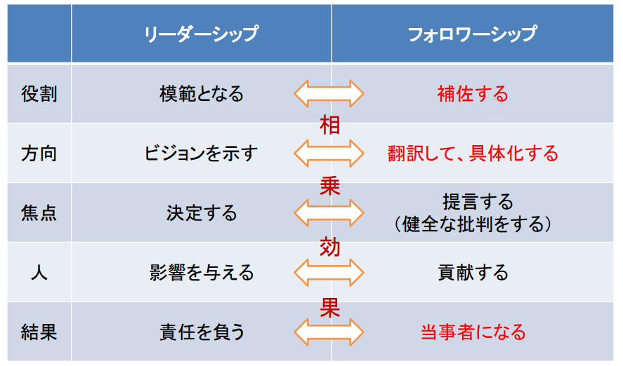 似たような議論ですが、上司にあたる人が「リーダー」という役割を持つのであれば、部下はただその指示に従うだけでなく、そのリーダーをどう支えるかという「役割」を持っているという話は以前からあります。上司に「リーダーシップ」が必要なのと同じように、部下には「フォロワーシップ」という働きが必要というものです。
