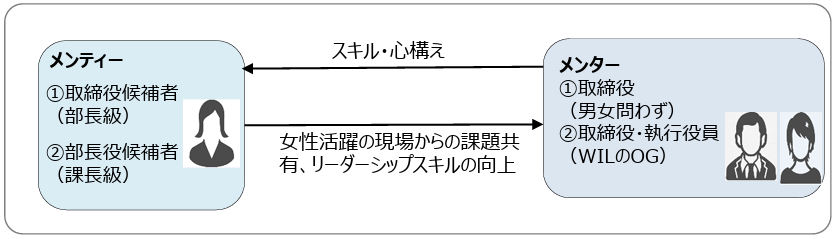 こうした課題への対応策として、欧米で成果を上げている「クロスカンパニーメンタリングプログラム」に着目し、その有効性が調査・分析されました。