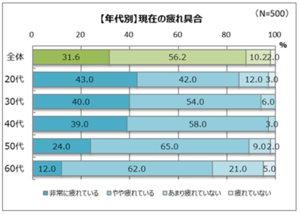 出所)大正製薬製品情報サイト「リポビタン>大正製薬お役立ちコラム>疲れに効くコラム>疲れが取れない20代。アンケートで見えた若者の疲れと解消法」