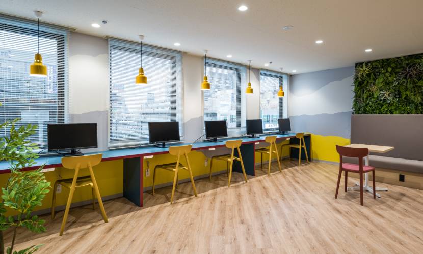 空きフロアを3期施工で個室・集中ブース・ラウンジ・交流エリアへ段階整備。若者が集い成長し巣立つ場を、駅徒歩1分の強みと一体で具現化。