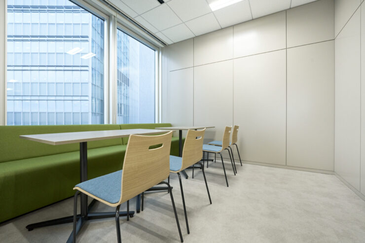 和と北欧を融合した「ジャパンディ」をコンセプトに、木目や自然素材を多用。温かみと洗練を両立したデザインで、若手にも“働きたい”と感じさせるオフィスイメージを確立した。