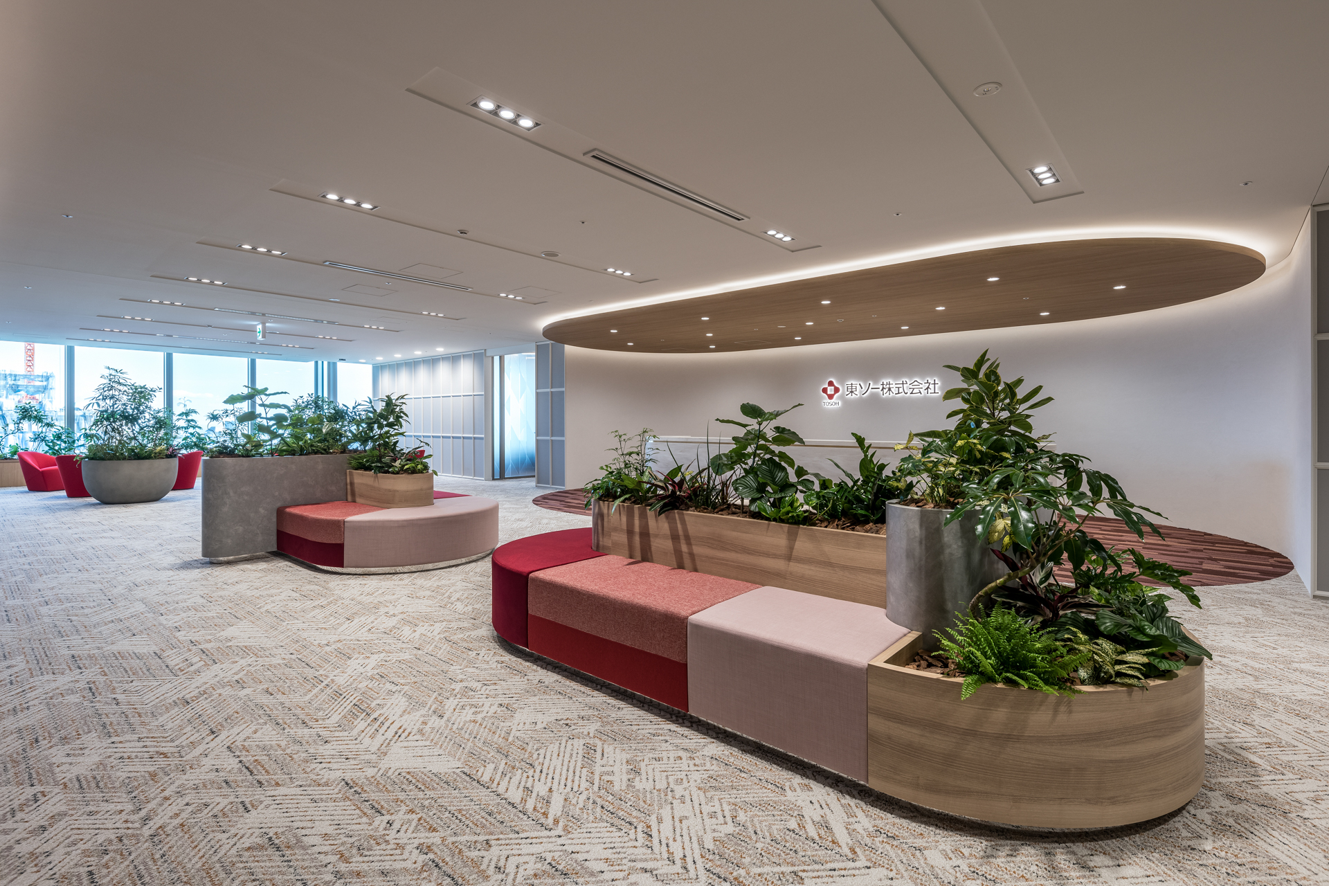 エントランス、コミュニケーションスペース、リフレッシュ、ワークスペース、会議室・応接室