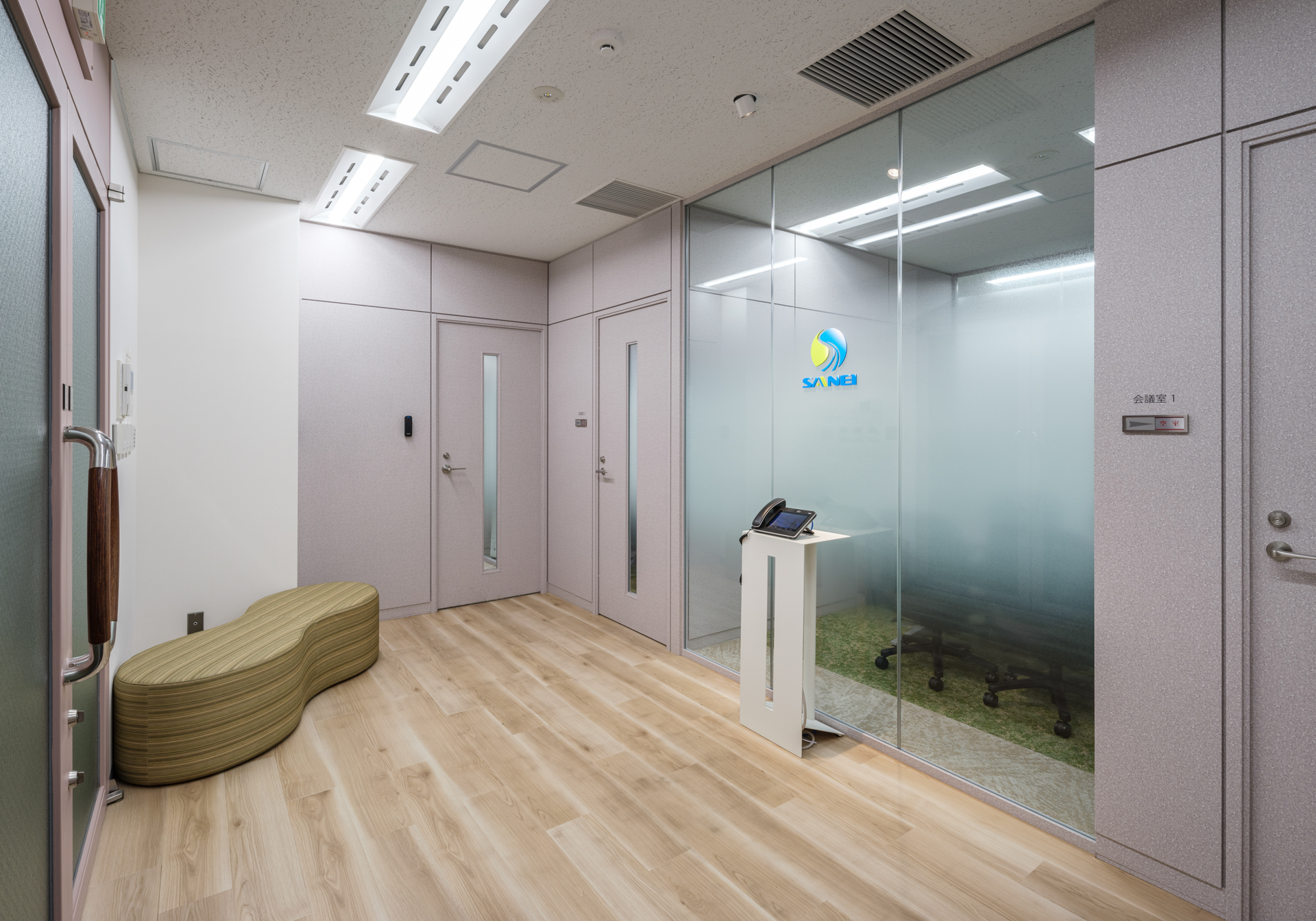 エントランス、コミュニケーションスペース、リフレッシュ、ワークスペース、会議室・応接室