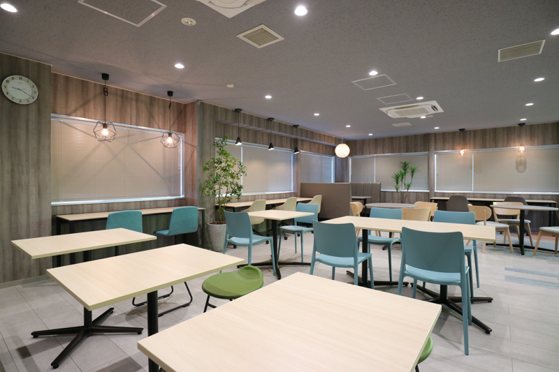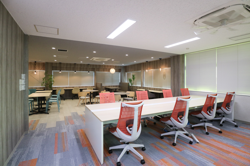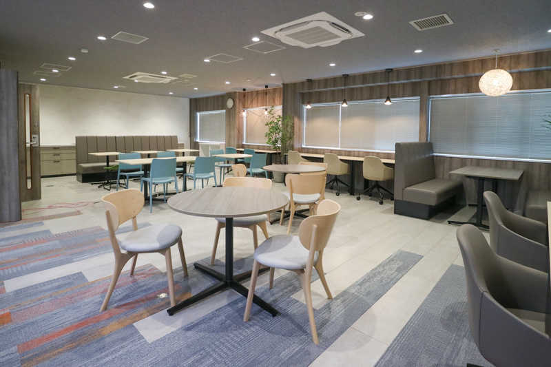 食堂×ワークスペースの一体化で多目的利用を可能に