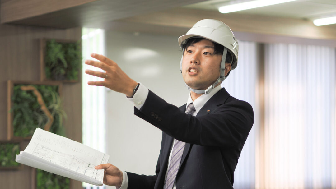 施工管理の仕事は、現場で工事がスムーズに進むように全体を調整する仕事です。規模は様々ですが、150-1000坪程の案件を担当しています。各社が作業しやすいように工程を調整したり、日々変わる現場の状況に対応しながら、完成までしっかりと導いていきます。